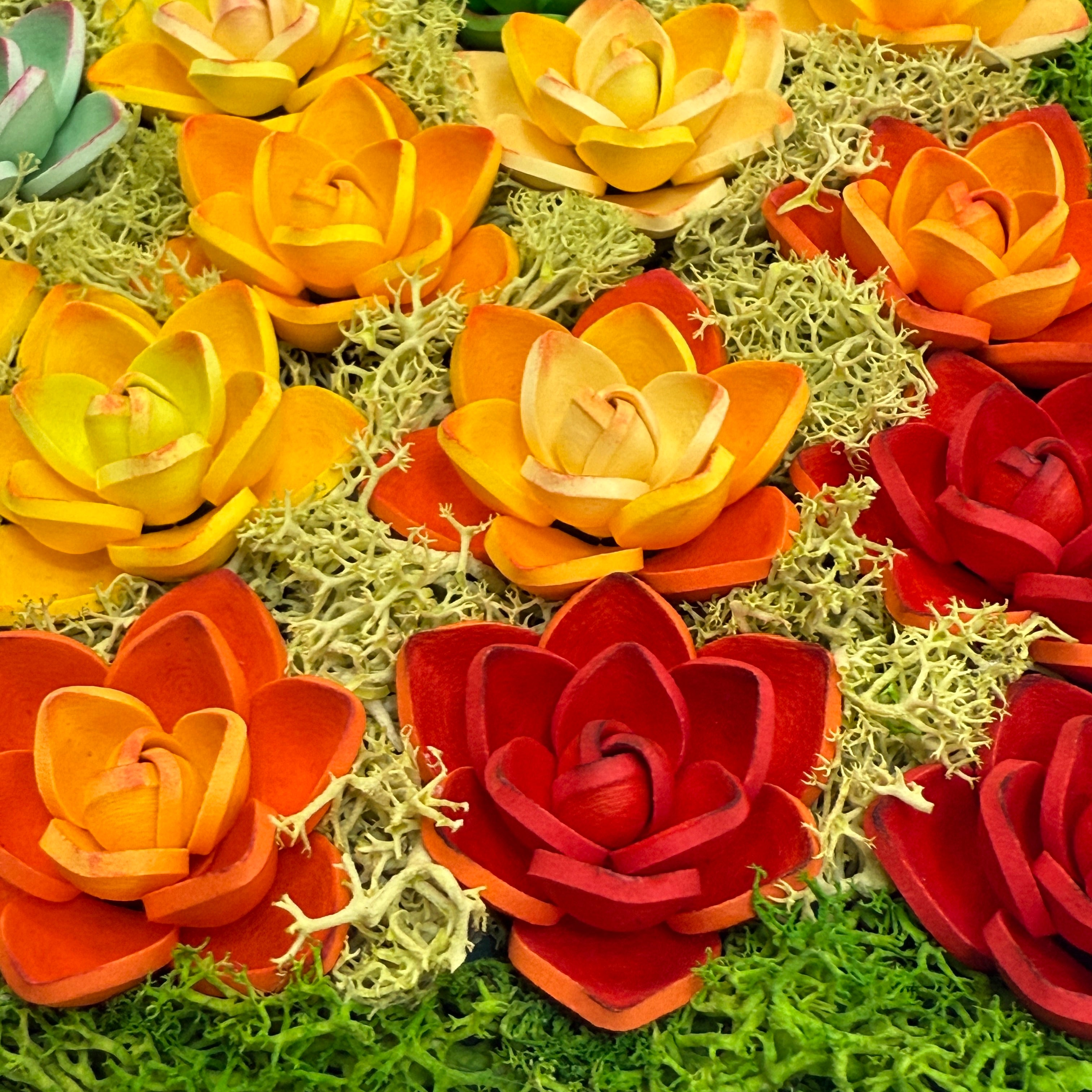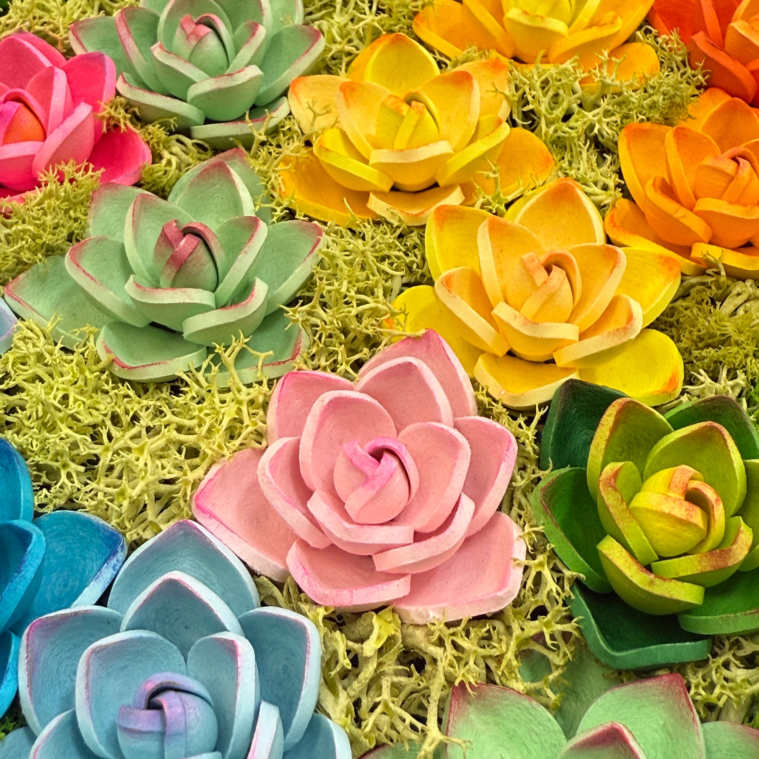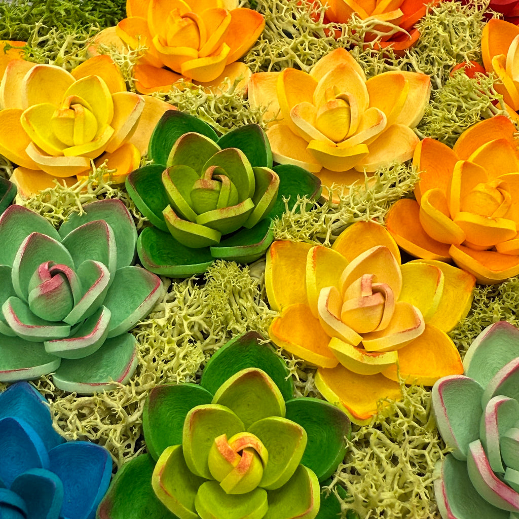 “Vibrance” is a joyful explosion of color and texture, crafted entirely from paper. Each tiny succulent, carefully shaped and coiled, brings its own hue and charm, coming together in a lively symphony of color. The added touch of soft faux moss enhances its natural depth, creating a lush, garden-like harmony within the frame : a celebration of creativity, patience, and the beauty of handmade art.