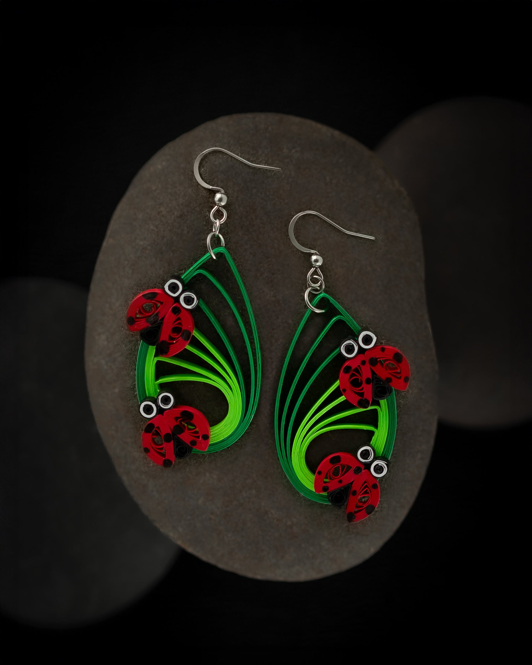 These colorful, easy-to-wear, and lightweight paper quilling earrings are made using eco-friendly, acid-free paper that does not fade or stain. They are coated with a clear acrylic sealant, ensuring they are both sturdy and water-resistant.